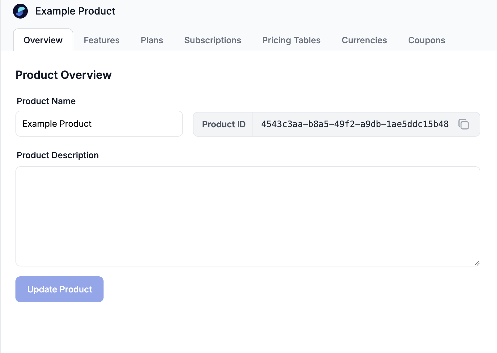 Copy Product ID, which you’ll need later for the .env file in the example app.