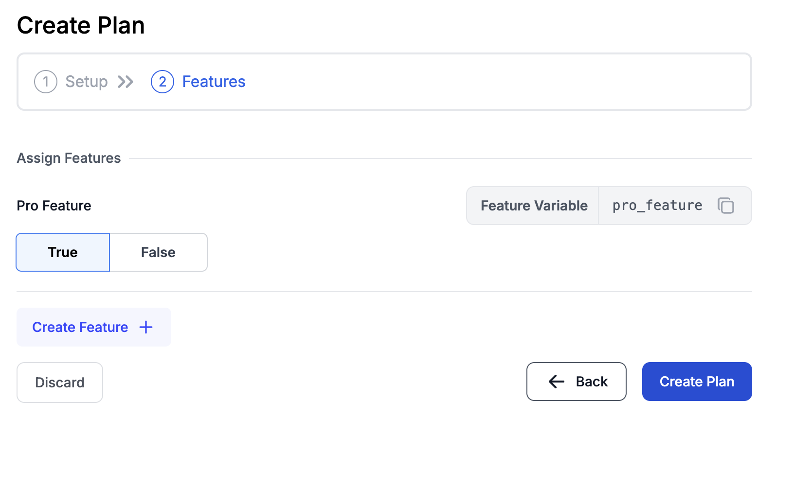 Once the Feature is created, click on Create Plan. The Feature will be assigned to Plan.